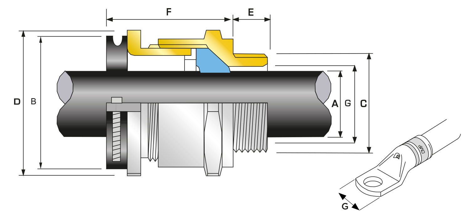 A2EC-FL | Cable Gland For Rolling Stock | With Heavy Duty Clamp For All Types of Unarmoured Cables with Pre-Installed Lugs