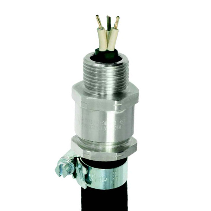This product includes a hose connection facility to securely attach protective hose with a cable housed within, the cable is then securely sealed using a CMP displacement seal.