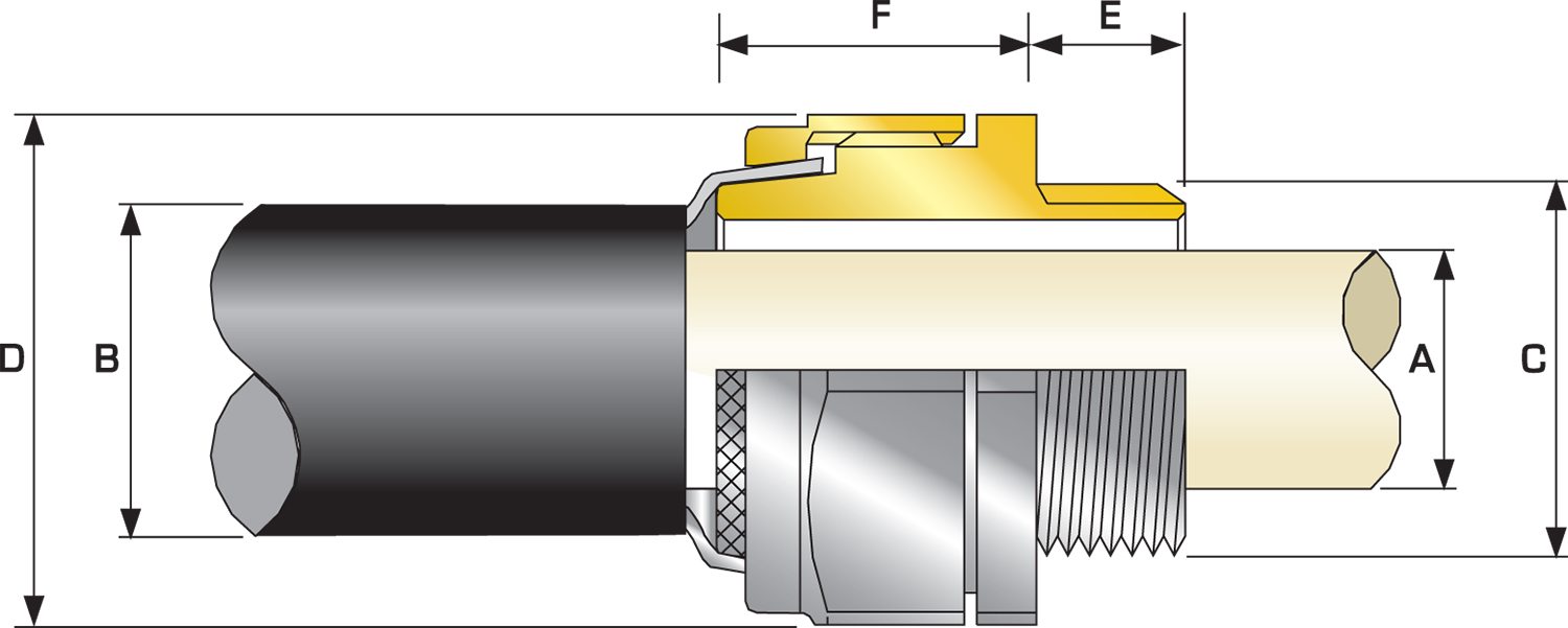 | Cable Gland Size | Available Entry Threads 'C' (Alternate Metric Thread Lengths Available) | Cable Bedding Diameter 'A' | Overall Cable Diameter 'B' | Armour Range | Across Flats 'D' | Across Corners 'D' | Protrusion Length 'F' | Combined Ordering Reference (*Brass Metric) | Shroud | Cable Gland Weight (Ozs) |