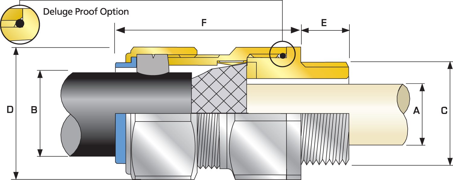 | Cable Gland Size | Available Entry Threads 'C' (Alternate Metric Thread Lengths Available) | Cable Bedding Diameter 'A' | Overall Cable Diameter 'B' | Armour Range | Across Flats 'D' | Across Corners 'D' | Protrusion Length 'F' | Combined Ordering Reference (*Brass Metric) | Shroud | Cable Gland Weight (Ozs) |