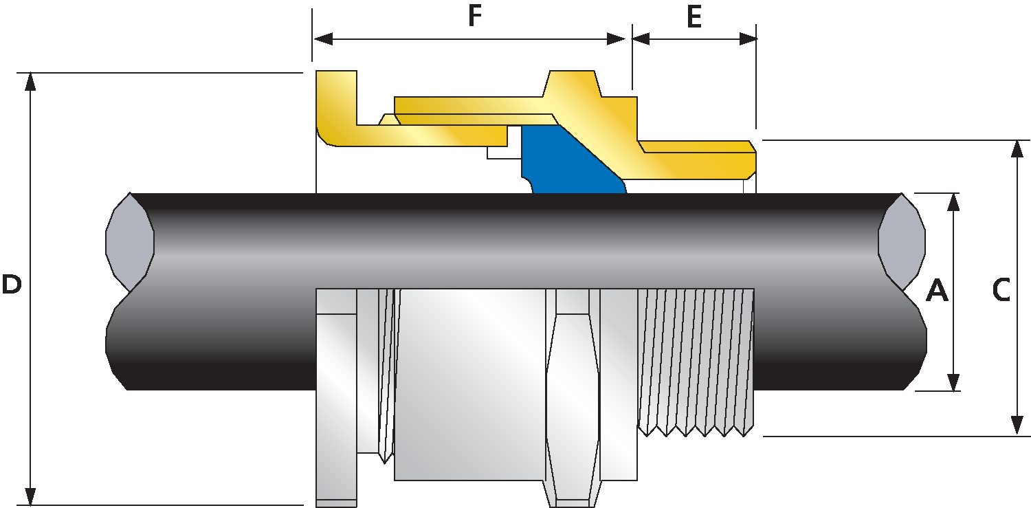 Cable Gland SizeAvailable Entry Threads 'C'Overall Cable Diameter 'A'Across Flats 'D'Across Corners 'D'Protrusion Length 'F'Combined Ordering Reference
