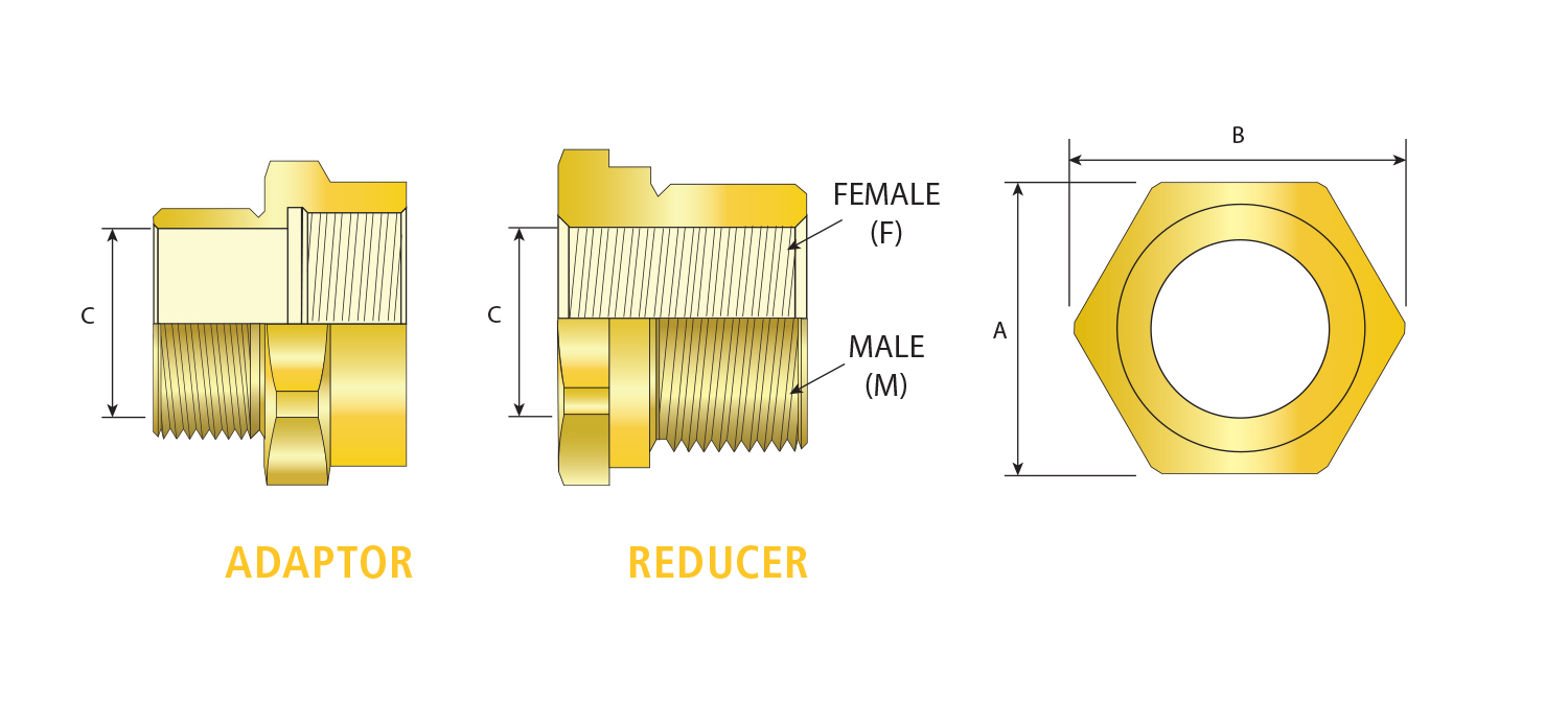 In order to select and adaptor/adapters & reducers, using the below dimension tables: