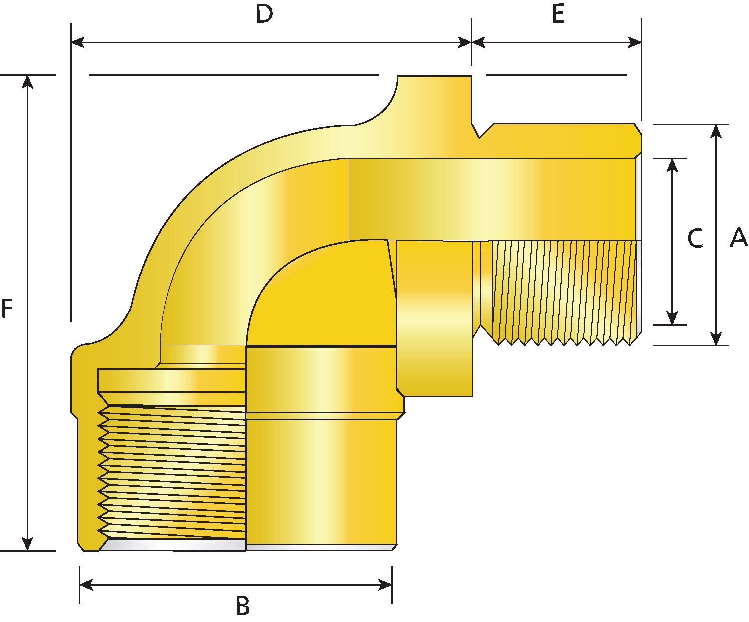 | Ordering Reference | Male Thread Size 'A' | Minimum Thread Length 'E' | Bore Diameter 'C' | Female Thread Size | Protrusion Length 'D' | Protrusion Length 'F' | Width 'B' | Width 'B' |