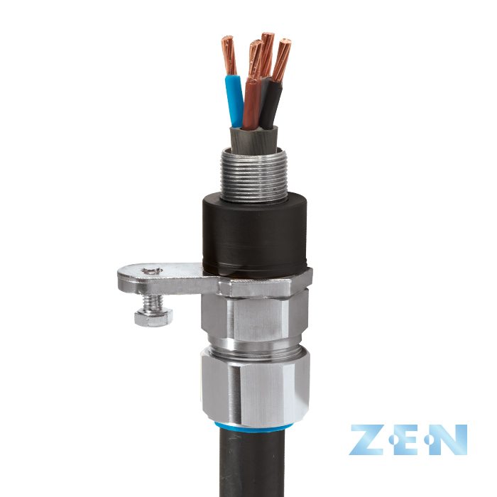 ZEN is available with an insulating arrangement to ensure that no contact is made between the earth circuit carried through the cable armour and the electrical enclosure which the cable enters. This isolation of the cable armour at one end of the cable is sometimes referred to as single point earthing. The ZEN range from CMP however allows more than a single point of earthing and delivering optimum safety.